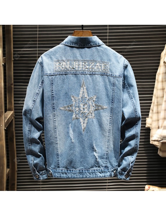 Men's Jacket Trend Men Autumn Classic Version Handsome Embroidery Casual Jacket - Blue 1A-8206 XXXL