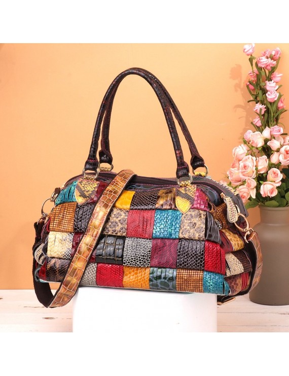 Women Bohemian Large Capacity Genuine Leather Handbags Patchwork Handmade Crossbody Bags