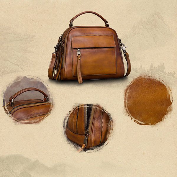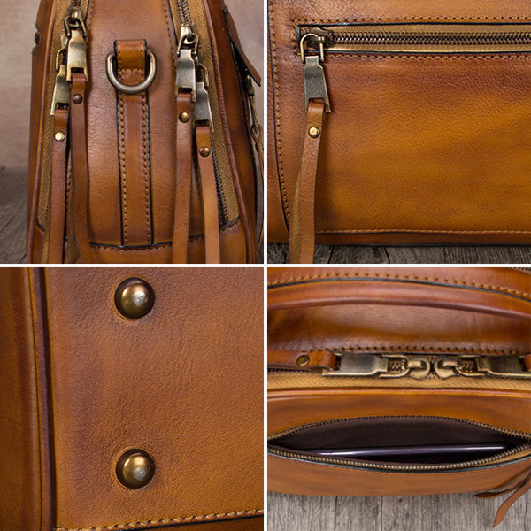 Brenice Vintage Solid Genuine Leather Handbag Crossbody Bag