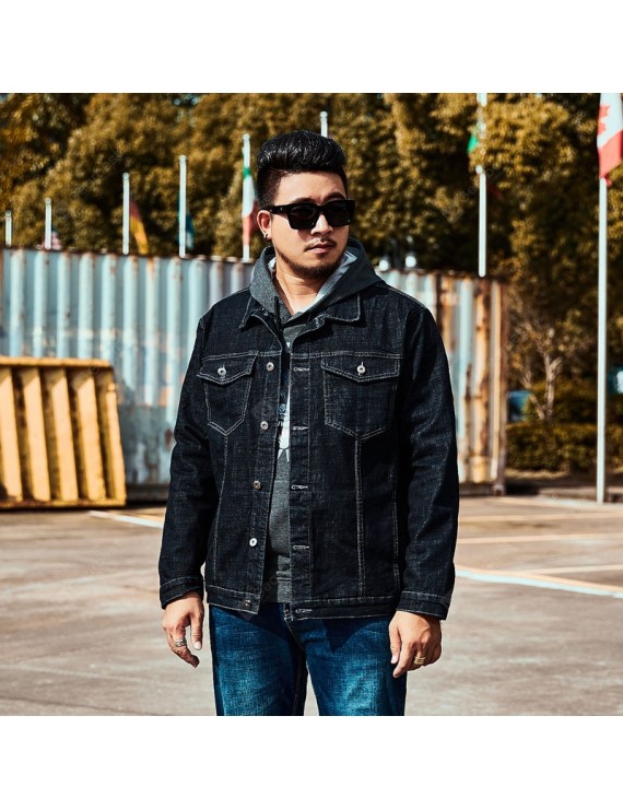 Autumn and Winter Trend Large Size Loose Stretch Men's Denim Jacket - Black XXXXL Large Size Loose Stretch Men's Denim Jacket