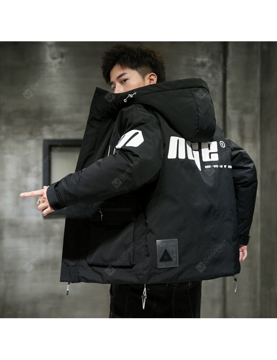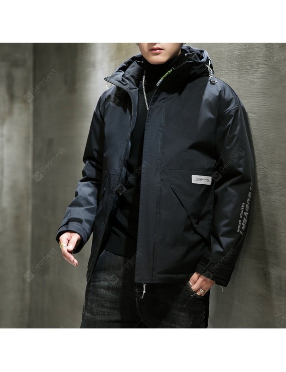 Fall And Winter Clothes Men's Casual Cotton Hooded Winter Thick Solid Color Collarless Loose Coat Handsome Teen