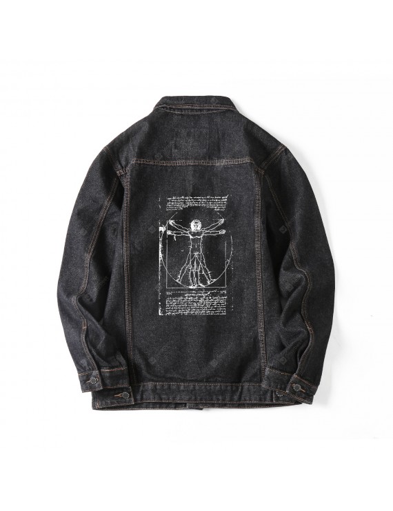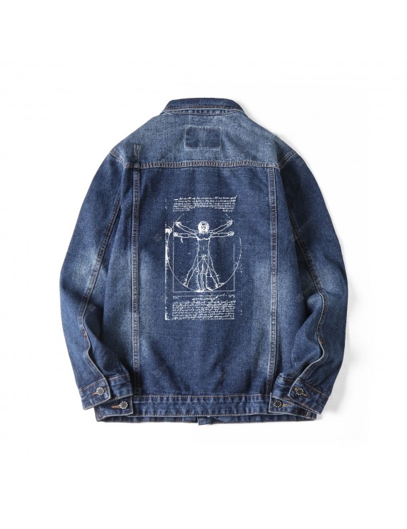 Large Size Men's Spring Men's Fashion Print Denim Jacket Loose Jacket
