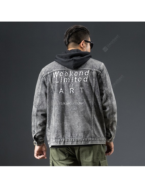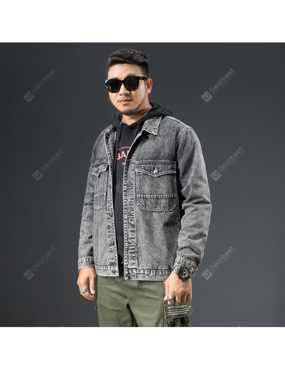 Large Size Printing Large Size Men's Autumn and Winter Loose Denim Stretch Jacket