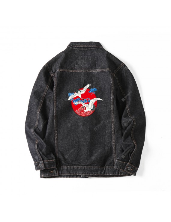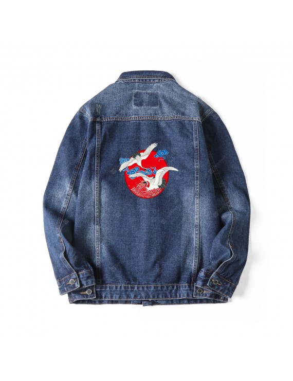 Men Denim Jacket Large Size Fashion Print Casual Loose Jacket