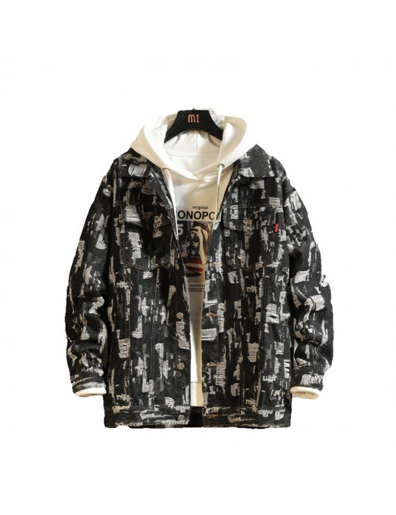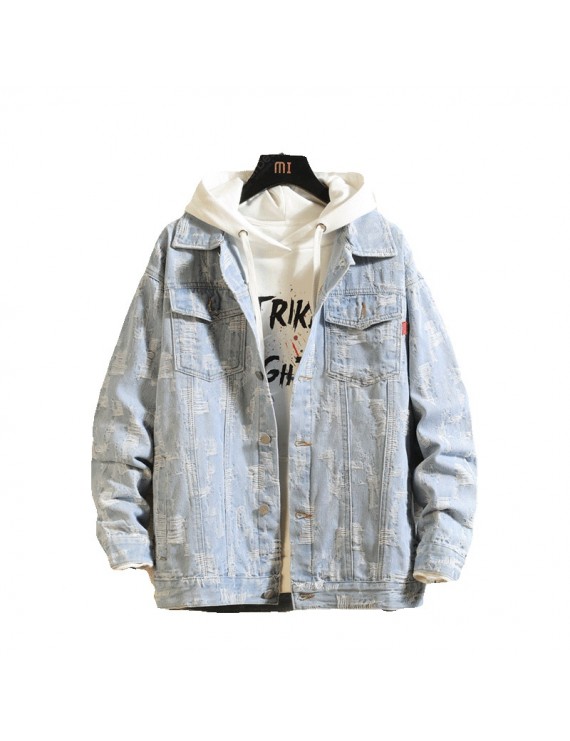 Men Fashion Casual Denim Jacket Loose Jeans Warm for Autumn Winter
