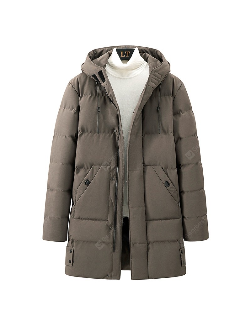 Winter Men's Mid-length Cotton Coat Thicken Warm Couple Large Size Padded Jacket - Khaki XXXL