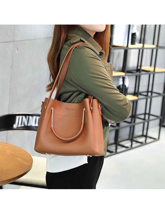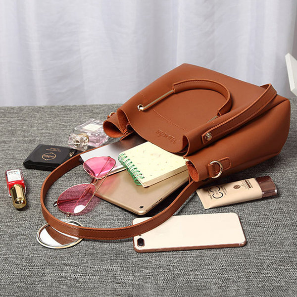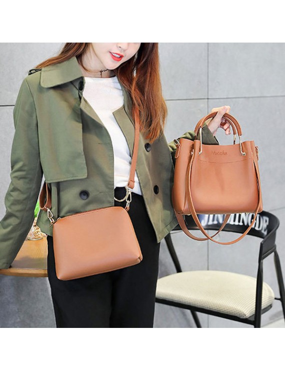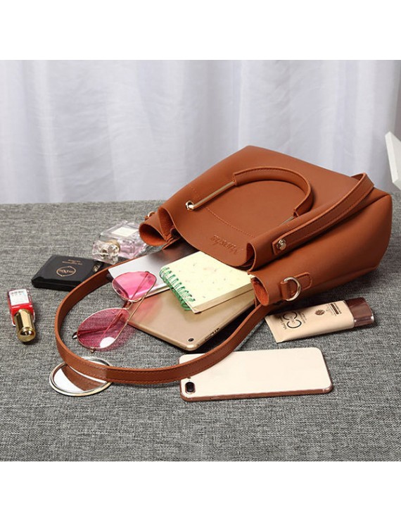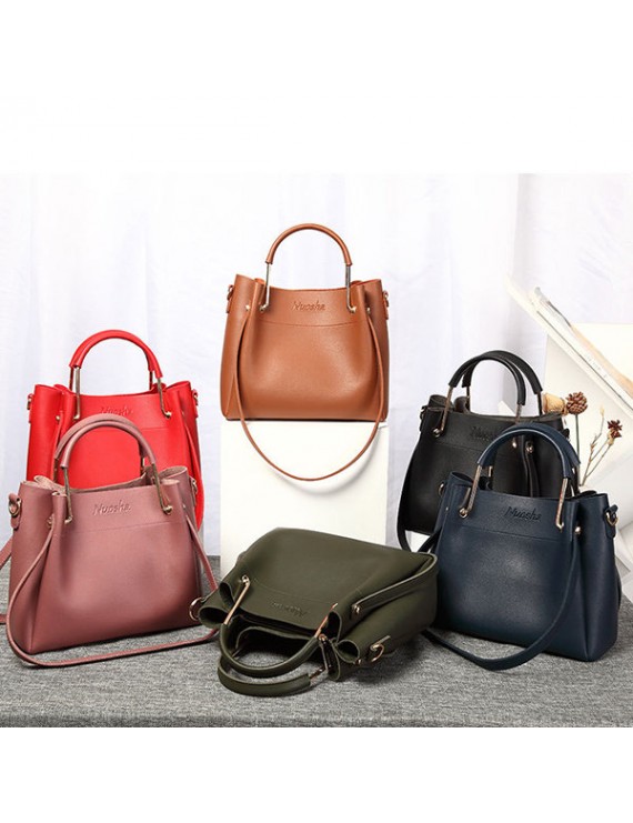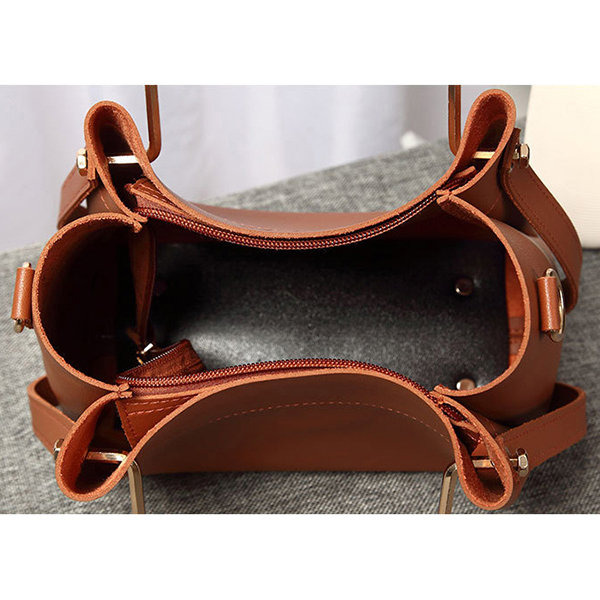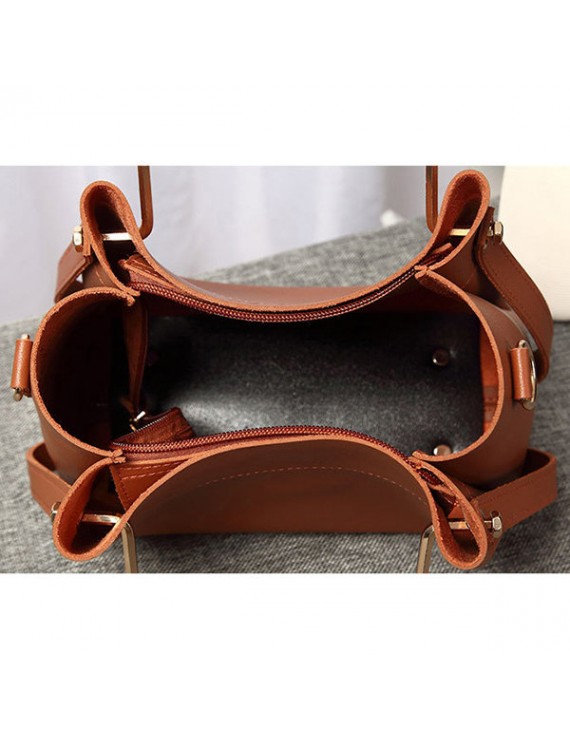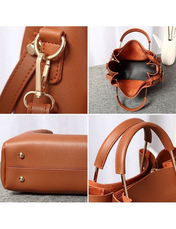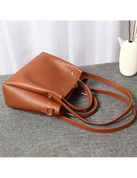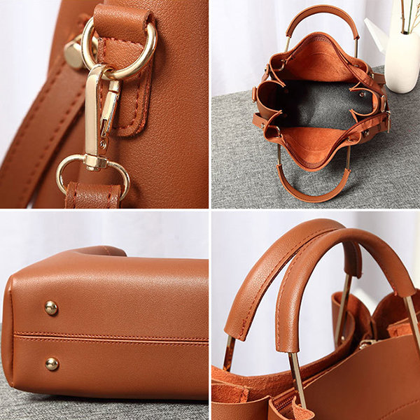 Women Faux Leather Two-piece Set Bucket Bag Handbag Shoulder Bag