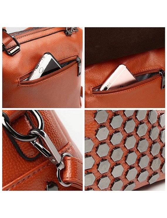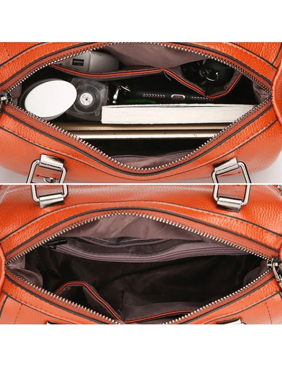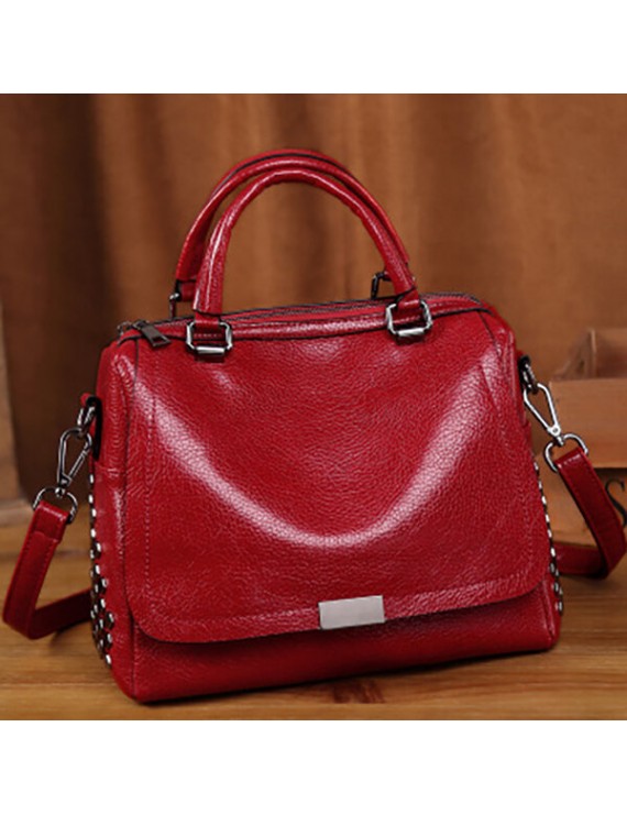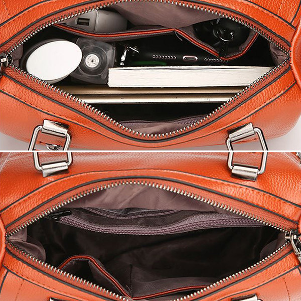 Women Retro Solid Leisure Handbag Faux Leather Crossbody Bag